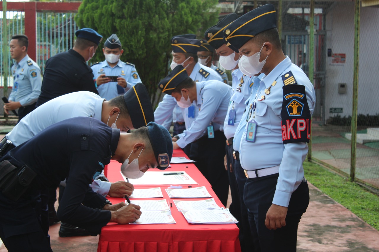“Laksanakan Janji Kinerja yang telah dideklarasikan bersama, capailah target kinerja yang telah ditentukan dengan baik dan tepat sasaran. Perencanaan yang baik didasari komitmen, konsistensi, serta buatlah perubahan yang positif bagi Lapas Serang khususnya serta mendukung kementerian hukum dan HAM menjadi lebih baik dan berintegritas, mudah-mudahan kerja keras kita semua tidak akan pernah mengkhianati hasil.” ujar Kalapas.