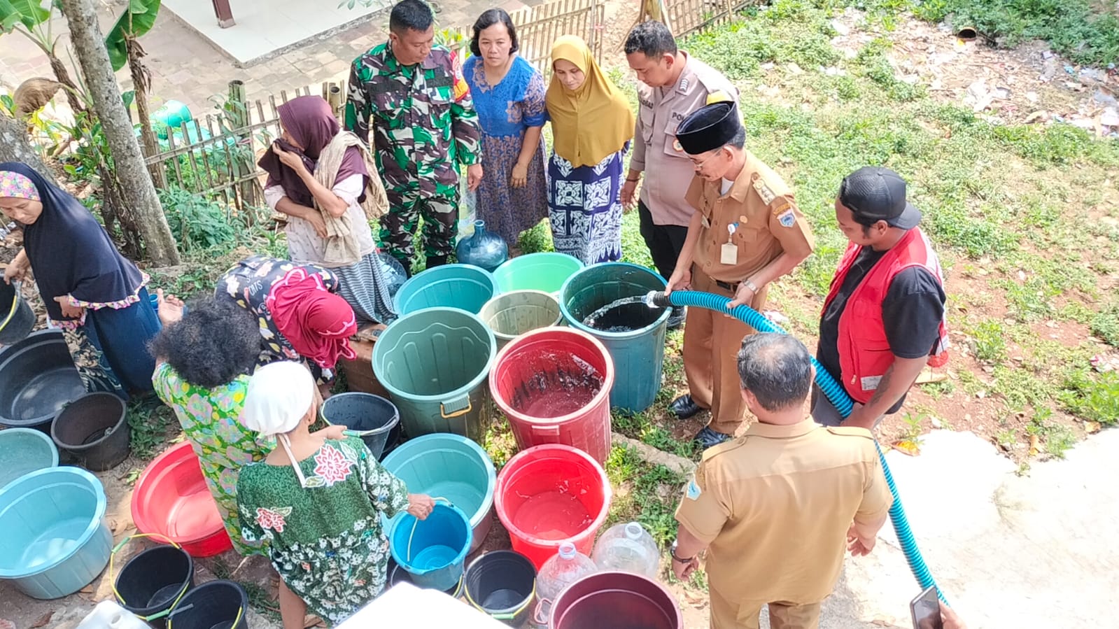 Pandeglang, (persepsi.co.id) – Koramil jajaran Kodim 0601/Pandeglang, terus berupaya membantu mengatasi kesulitan yang terjadi di beberapa wilayah kabupaten Pandeglang akibat kemarau panjang yang menyebabkan warga masyarakat mengalami krisis air bersih, Selasa (12/09/23)