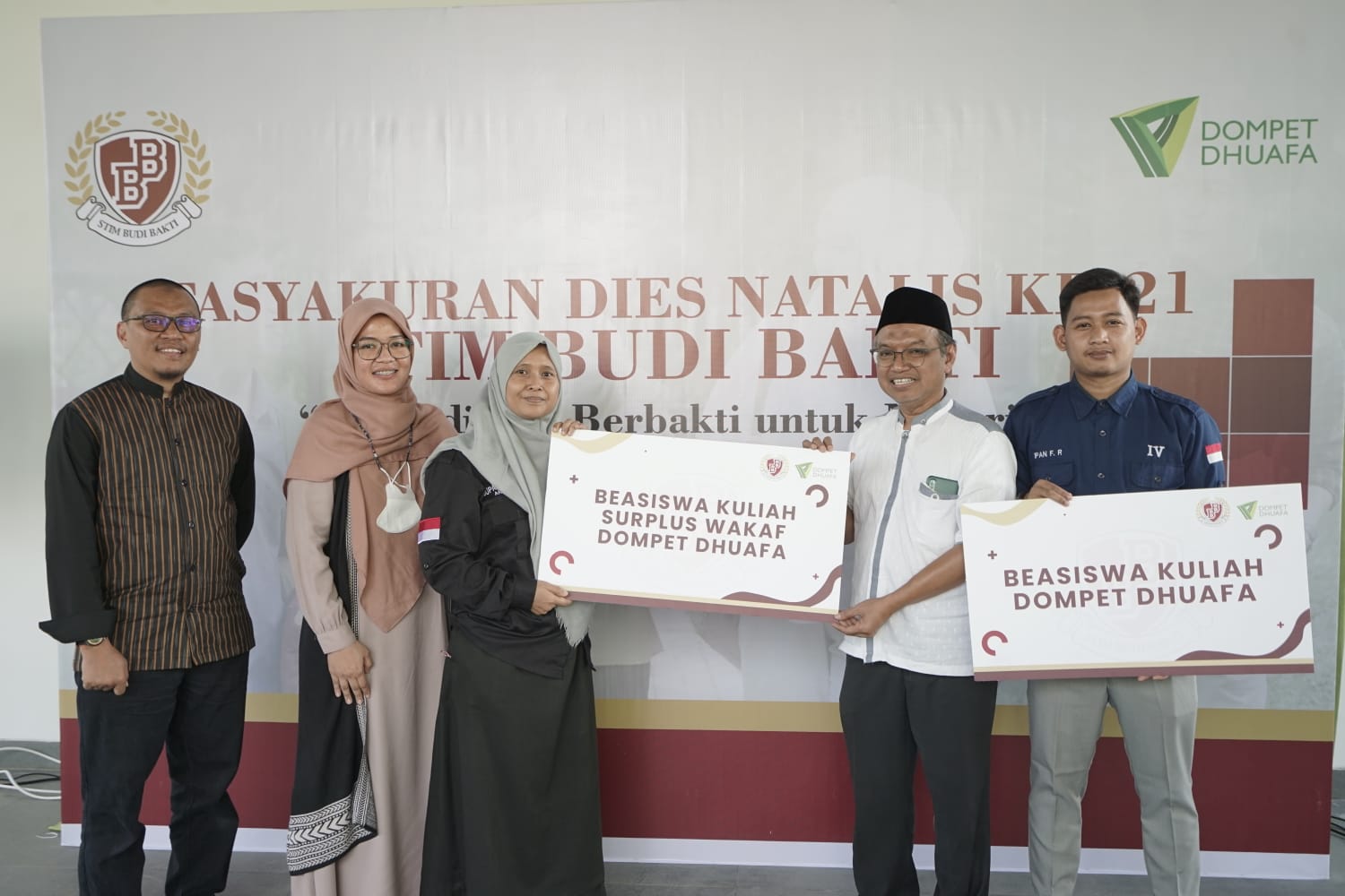 Acara tasyakuran ini juga diselingi dengan penyerahan beasiswa pendidikan Dompet Dhuafa kepada dua mahasiswa STIM Budi Bakti yang berprestasi. Beasiswa ini berasal dari zakat dan surplus wakaf yang dikelola oleh Dompet Dhuafa.