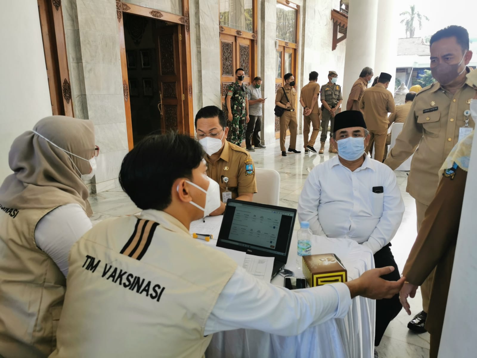 Pemerintah Kabupaten (Pemkab) Serang secara resmi memulai program vaksinasi ketiga (booster). Pencanangan dilakukan dengan memberikan vaksin kepada para pimpinan Forum Komunikasi Pimpinan Daerah (Forkopimda) dan kepala organisasi perangkat daerah (OPD) di Pendopo Bupati Serang, Senin (24/1/2022).