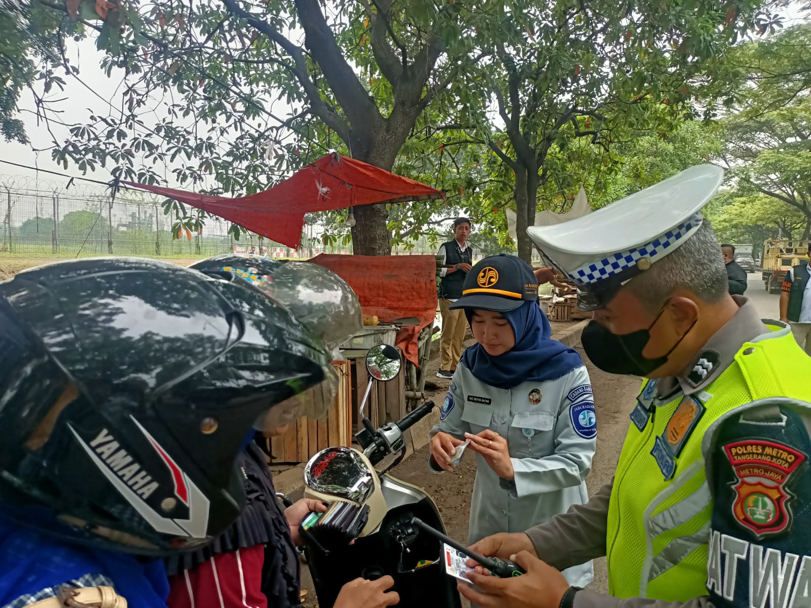 Petugas Jasa Raharja Perwakilan Tangerang Cabang Banten juga aktif berpartisipasai pada operasi Gabungan tersebut dengan menugaskan 2 orang Personil dilapangan untuk melakukan pengecekan langsung masa berlaku SWDKLLJ & IWKBU.