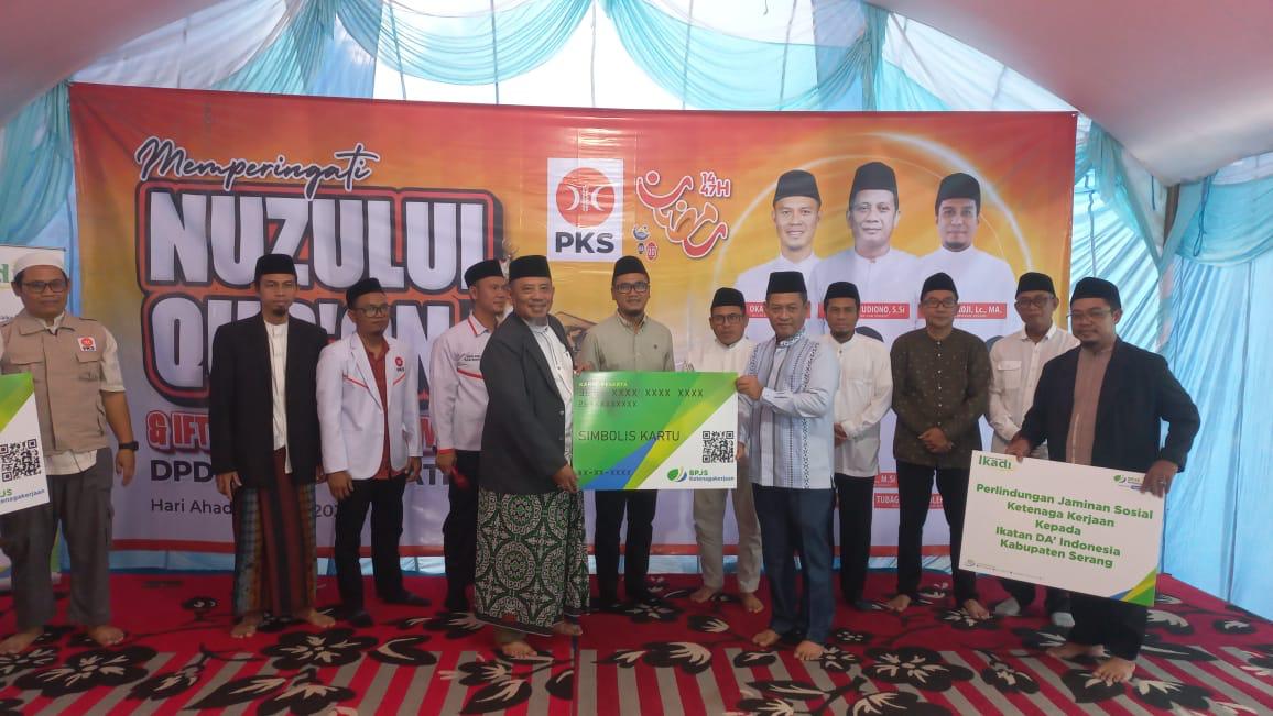 Penyerahan tersebut merupakan bentuk dukungan terhadap perlindungan jaminan sosial ketenagakerjaan bagi para dai. Penyerahan kartu kepesertaan dilakukan di Kantor DPD PKS Kabupaten Serang dalam rangkaian acara peringatan Nuzulul Quran, Minggu 8 Maret 2026.