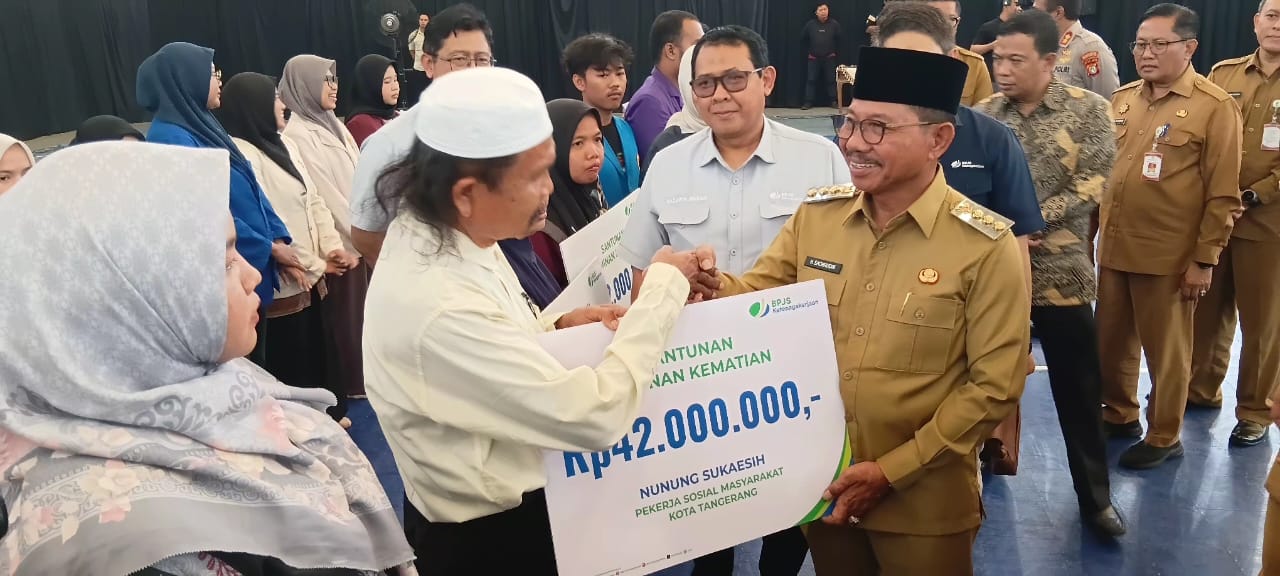 TANGERANG, (Persepsi.co.id) – BPJS Ketenagakerjaan bersama Pemkot Tangerang menyerahkan santunan Jaminan Kematian (JKM) sebesar Rp 42 juta kepada peserta BPJS Ketenagakerjaan yang meninggal dunia.
